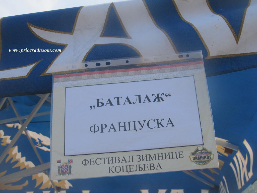 Od dima iz kotlića načičkanih u glavnoj ulici nisam uspeo da prebrojim koliko se ekipa takmičilo u kuvanju gulaša, ali sam saznao da je oboren rekord i da je bilo oko 200. Kako svako vidi ono što želi, ja sam zapazio jedini tim iz Francuske, koji je nastupao pod imenom Batalaž. Dejan Joksimović, čije poreklo vodi iz ovog kraja, a koji živi i radi kao tapetar u okolini Pariza, došao je u Koceljevu sa svojim kolegama Paskalom i Didijeom. Selo njegovih predaka zove se Batalage, a Dejan je napravio igru reči, pa ga je „preveo“ na francuski jezik i napisao onako kako se tamo čita – Batalaž.